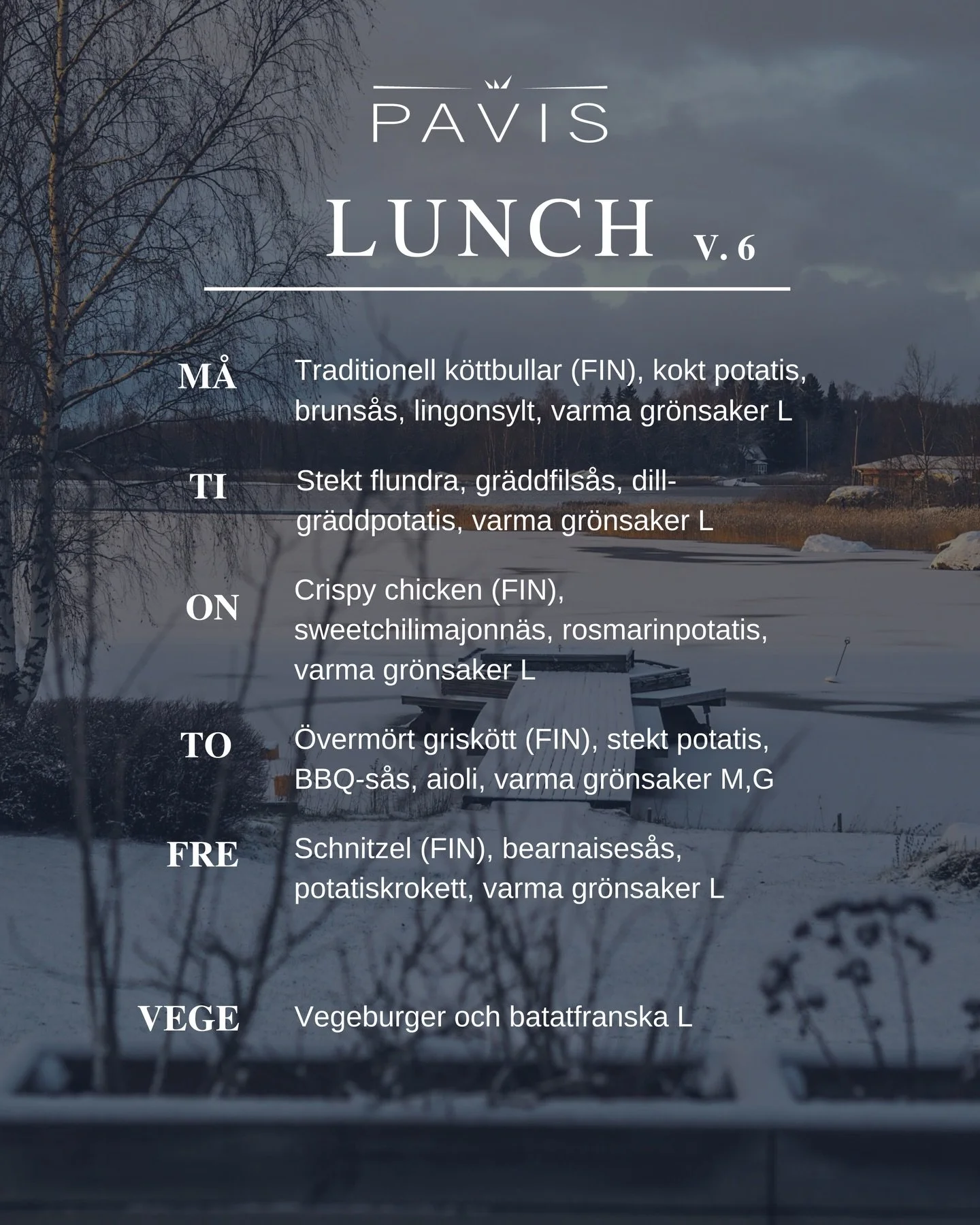 På restaurang Pavis vill vi bjuda våra gäster på modern mat med lokal prägel men även med inspiration från andra delar av världen. Vi följer matårets olika säsonger så långt det är möjligt och skapar en varierande meny.